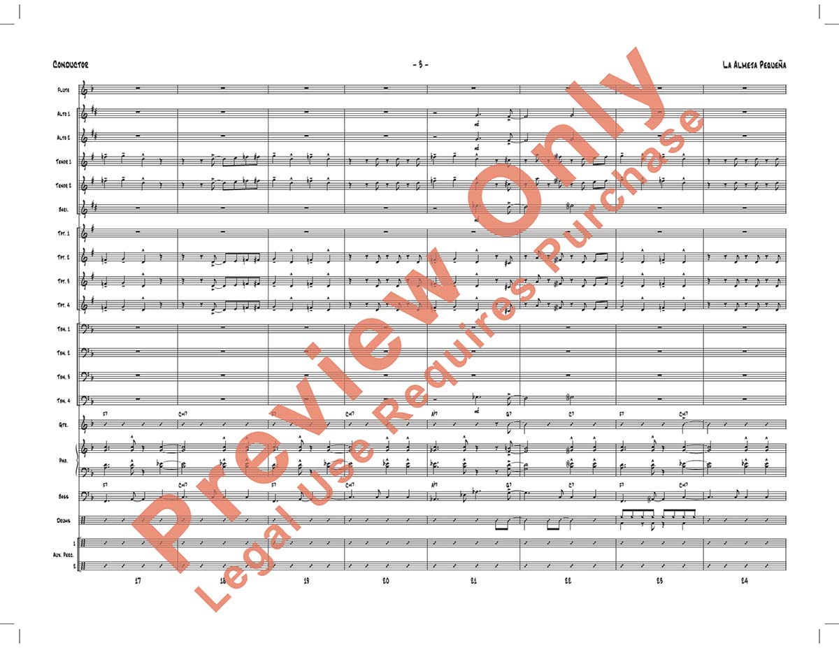 Product Code: 43675 Originally done by the Big Phat Band, this samba is played around 90 BPM in cut time. It's a very exciting Latin chart with solos for alto 1 and trumpet 2, and the trumpet 1 range is to written G on top of the staff. There are two auxiliary percussion parts, plus the usual optional parts to include flute, clarinet, and vibes. (4:27)