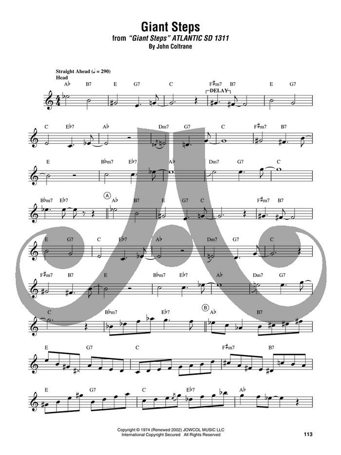 43 jazz solo transcriptions as played by the legendary John Coltrane, transposed for Alto and Baritone Sax (Eb Instruments),including: