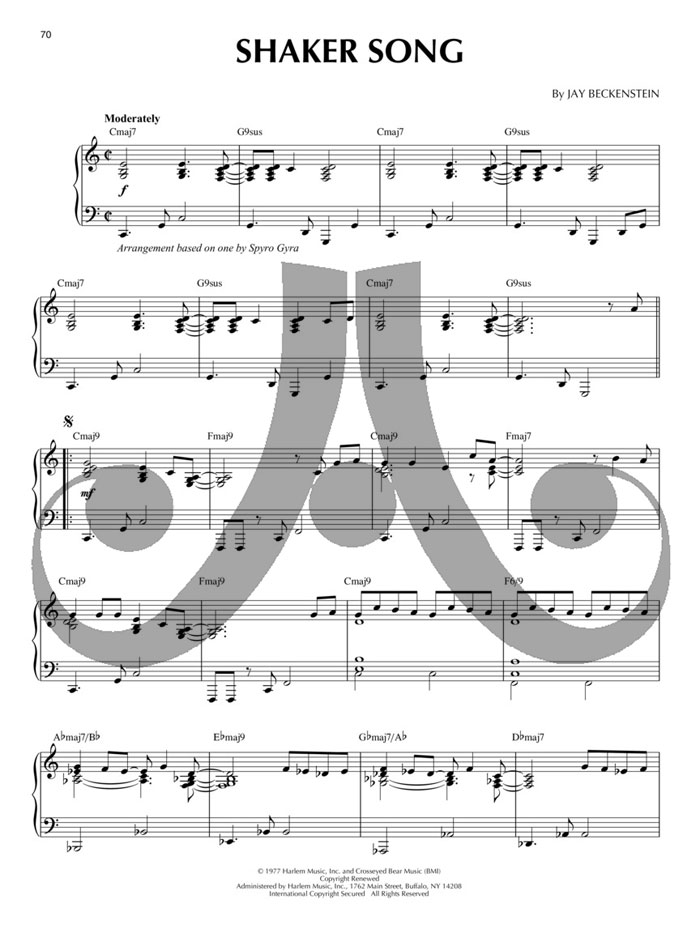 21 smooth jazz selections in piano solo arrangements with chord symbols.