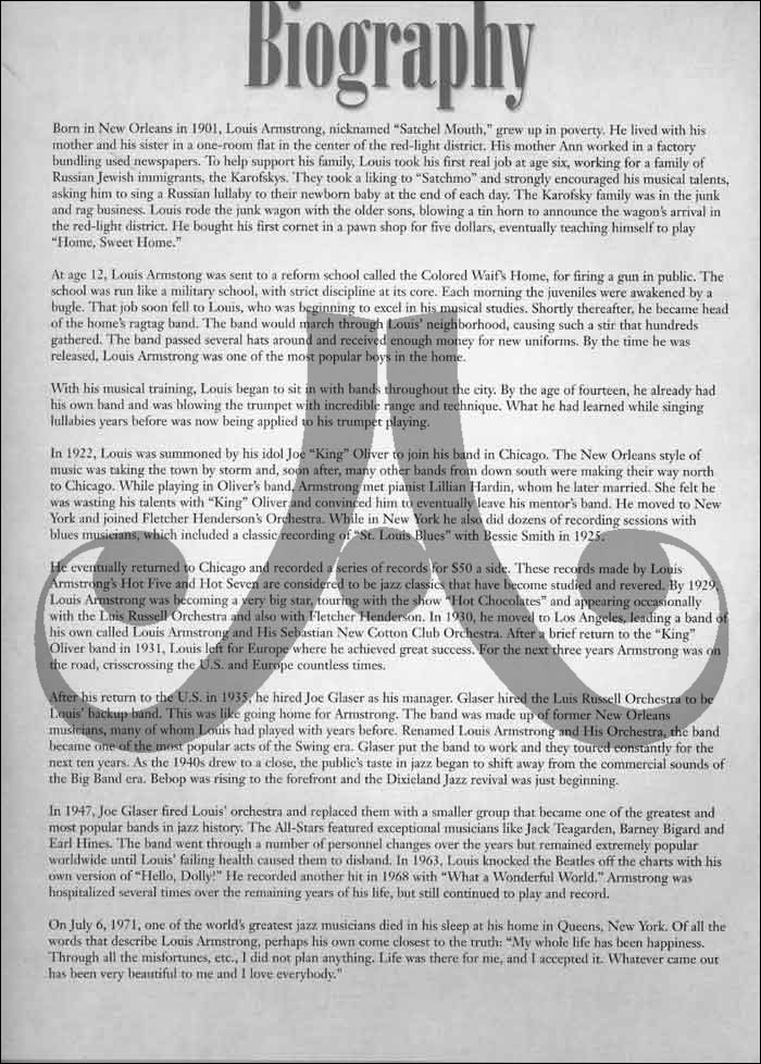 Product Code: LAPS The All Music Guide regards trumpet virtuoso Louis Armstrong as “the most important musician in (jazz's) history.” This collection assembles note-for-note transcriptions of his trumpet playing on 16 fantastic standards.