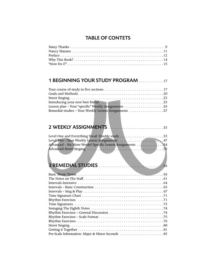 Product Code: MFJV Internationally acclaimed jazz vocalist, pianist, and educator Nancy Marano offers a unique voice and piano system designed to develop the ear and basic skills of any singer who wishes to become a complete musician. Specific weekly lessons are assigned. Vocalists play and sing each exercise. Previous piano skills are not required. Beginning at a remedial level, and increasing in difficulty, studies include scales, intervals, pitch, rhythms, chords and blues. Musicianship for the Jazz Vocalist is an indispensable companion for both beginners and advanced singers.