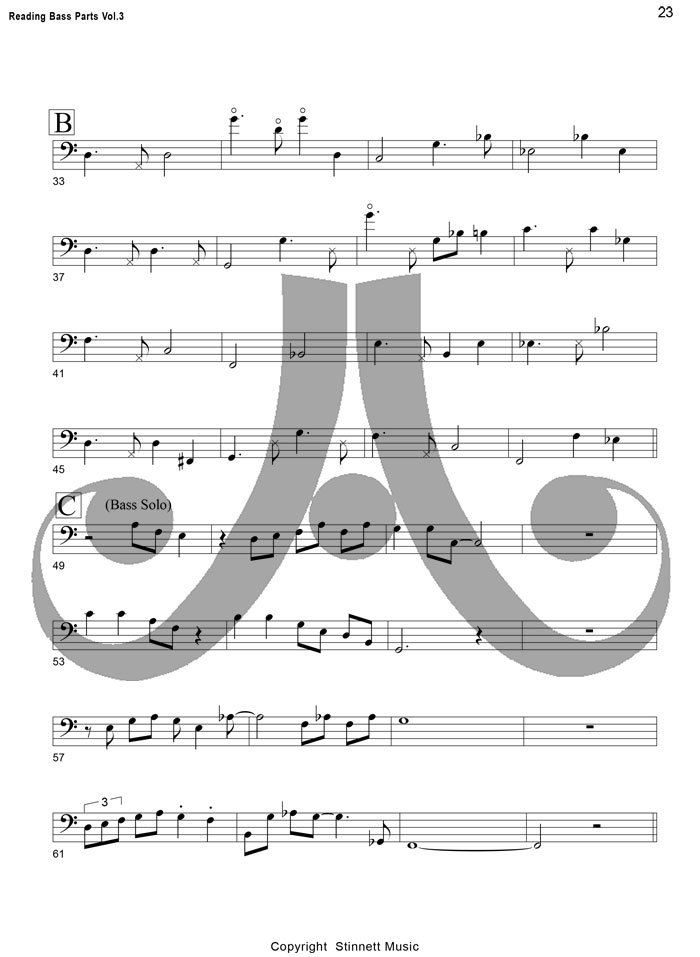 Vol.1: A reading/play along book/cd set. The book contains charts as you would encounter on a variety of musical situations, from studios to road gigs. On the CD, each chart is played twice, once with the bass part and then without so that you can fill in.