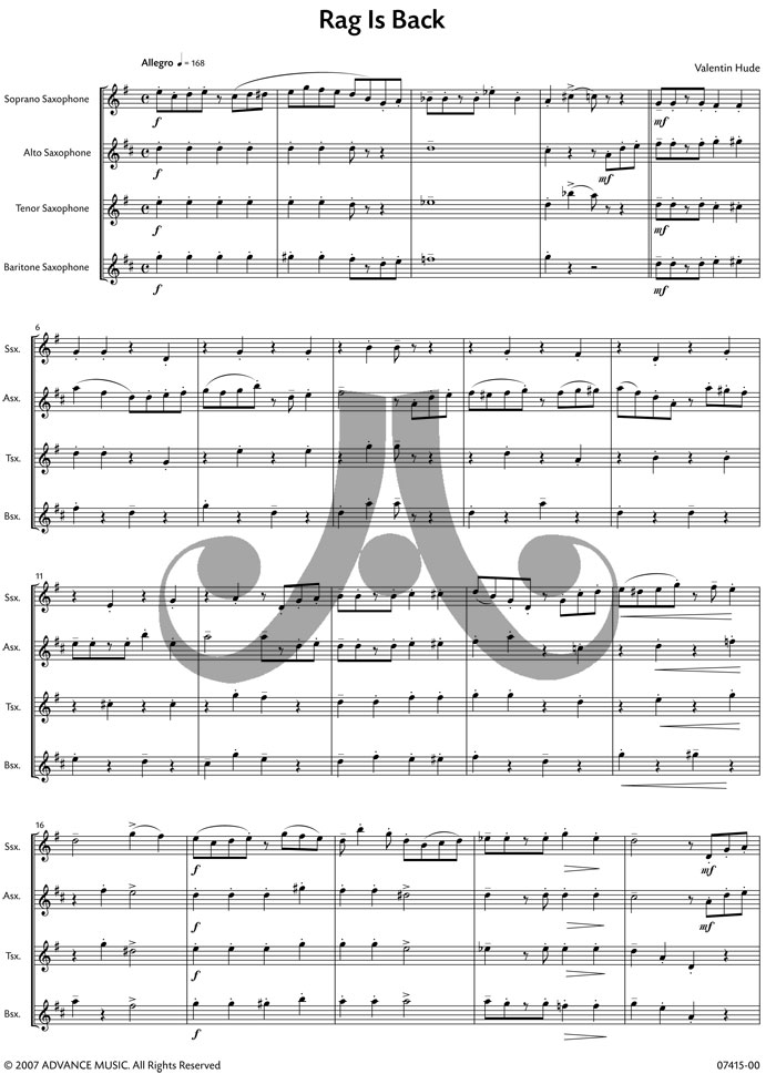 Product Code: 07415 This nice-and-easy-to-perform ragtime features a number of catchy tunes. Every individual voice carries the melody. The retardations and accelerations stipulated in the second part of the arrangement give the artist's fancy full scope. The modulated reprise takes the piece to its final climax. Time for Ragtime! |